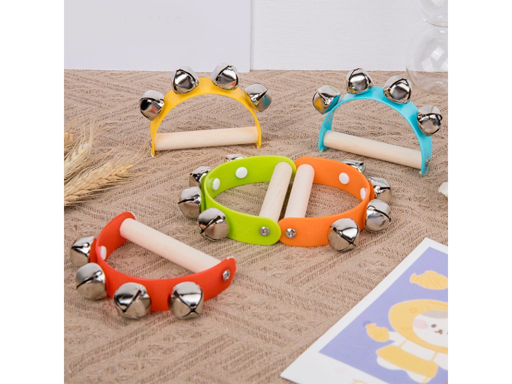 Hudební nástroj s plastovým obloukem a dřevěnou rukojetí, osazený kovovými rolničkami. Ideální pro rozvoj rytmu a hudebních dovedností u dětí. Prodává se po sáčcích po 40 ks
