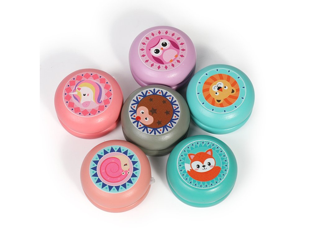 Klasické jojo vyrobené ze dřeva, zdobené veselými zvířátky. Lehká konstrukce a hladký pohyb usnadňují hru i menším dětem. Balení obsahuje 24 ks.