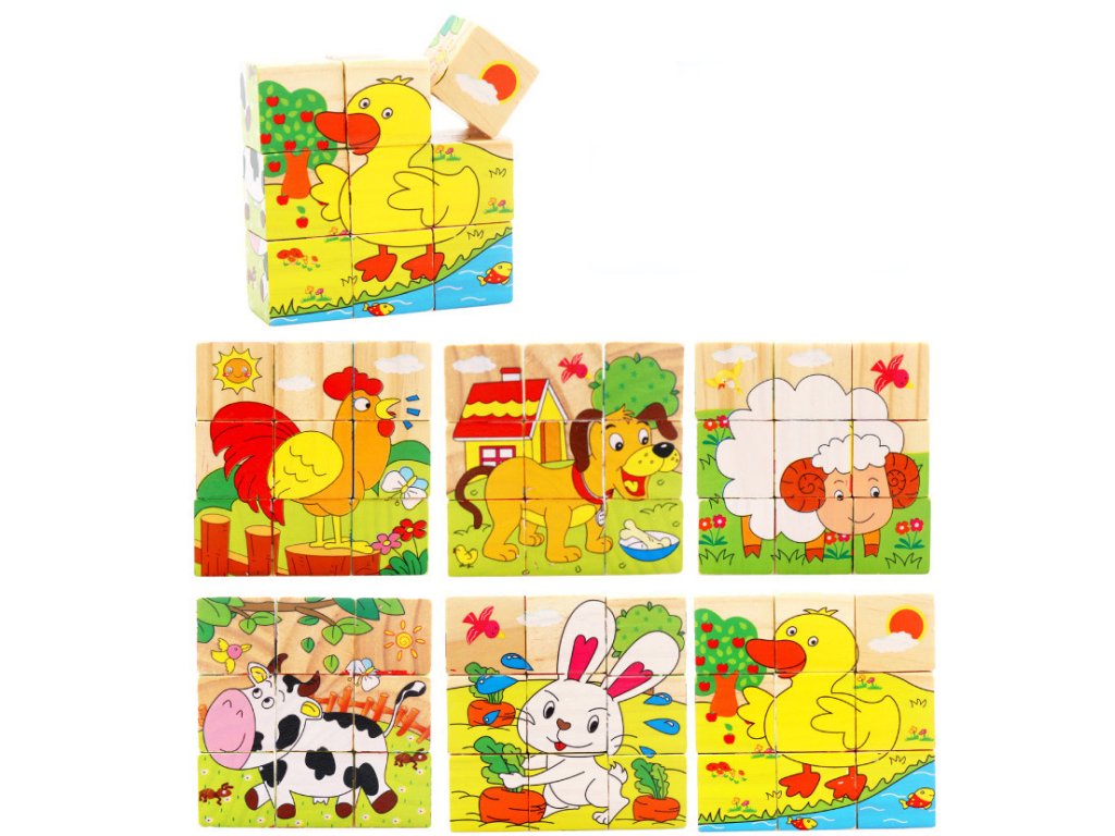 Obrázkové kostky kubusy Zvířátka 9 kostek